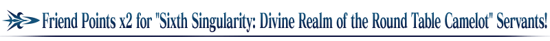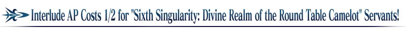 Interlude AP costs will be halved for Servants appearing in "Sixth Singularity: Divine Realm of the Round Table Camelot" during the period below.