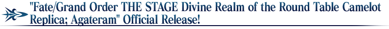 "Fate/Grand Order THE STAGE Divine Realm of the Round Table Camelot Replica; Agateram" was adapted for the stage from Kinoko Nasu's script for the game chapter "Sixth Singularity: Divine Realm of the Round Table Camelot".