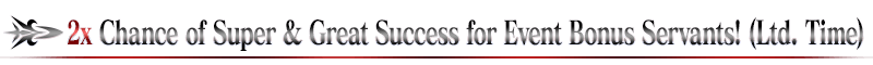 For the following Servants, the chance of Super Success (double EXP acquired) and Great Success (triple EXP acquired) when performing Enhancement will be doubled during the period below!
