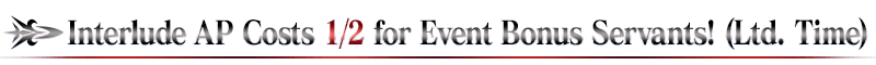 During the period below, Interlude AP costs will be halved for eligible Servants! * AP costs will be halved even if you withdraw from a battle.
