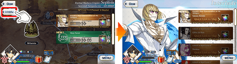 While it was previously necessary to return to the Interludes screen manually after moving to an Interlude located on the map, the new "Interludes" button will allow you to return directly to the Interludes screen.