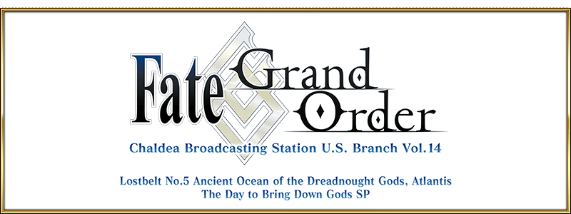 "Chaldea Broadcasting Station U.S. Branch Vol. 14: Atlantis Pre-Release Special", a special program about "Fate/Grand Order" English version, was announced for 2021-11-30 18:00 PST.