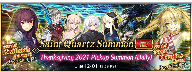 To celebrate "The FGO Thanksgiving Special 2021", the following Servants will be featured as Pickup Servants!