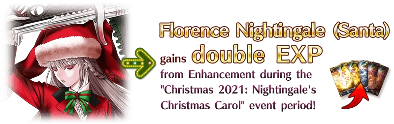 For the duration of the event period, "★4 (SR) Florence Nightingale (Santa)" will receive double EXP when performing Enhancement.