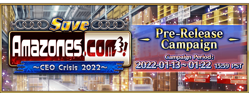 From 2022-01-13 20:00 to 01-22 15:59 PST, we'll be holding the "Save Amazones.com! CEO Crisis 2022" Pre-Release Campaign!