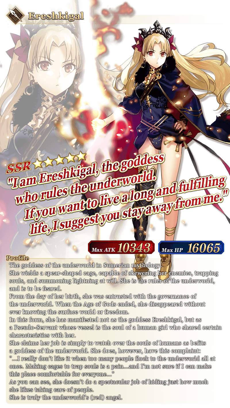 See "★5 (SSR) Ereshkigal" in action on YouTube, where we're sharing an exclusive video of her Noble Phantasm!