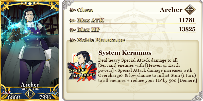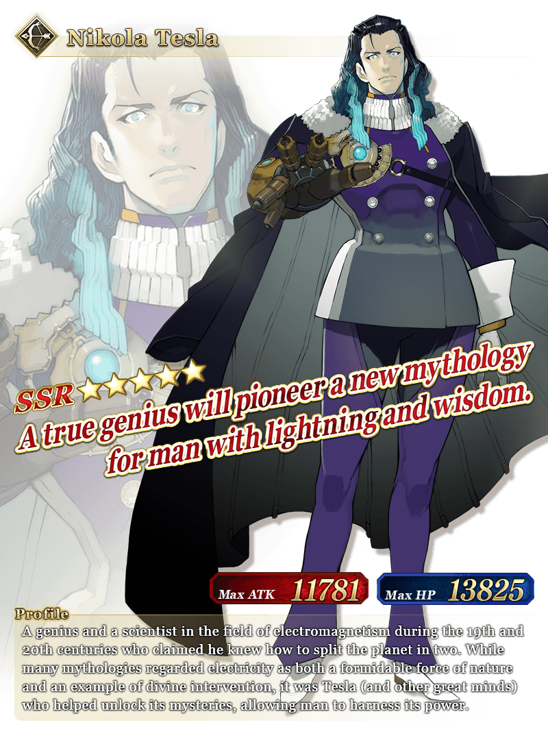 See "★5 (SSR) Nikola Tesla" in action on YouTube, where we're sharing an exclusive video of his Noble Phantasm!