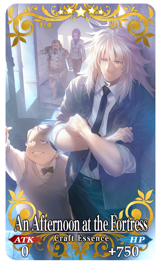 ★★★★★SSR An Afternoon at the Fortress ATK 0 HP 750 (MAX: 3000) Skill Increase Arts Card effectiveness by 10% & Buster Card effectiveness by 10% & NP Strength by 10% for yourself + Increase Dracul Coin amount per drop by 30% [Event Only]