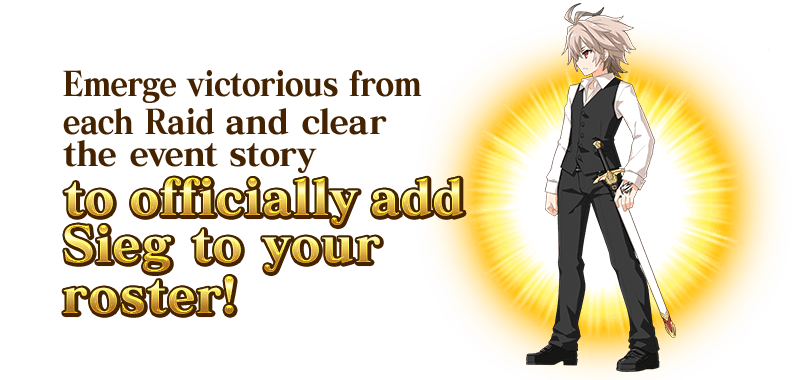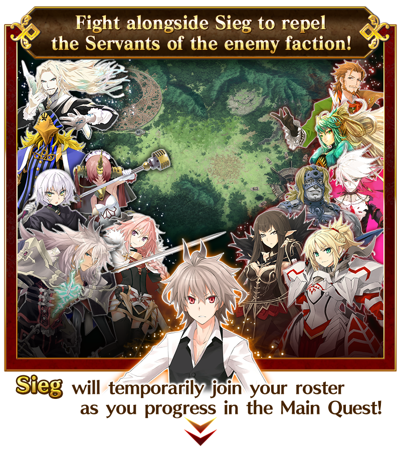 All Masters, cooperate to repel the enemy faction's Servants, complete the Main Quest, and officially add Event Limited Servant "★4 (SR) Sieg" to your roster!