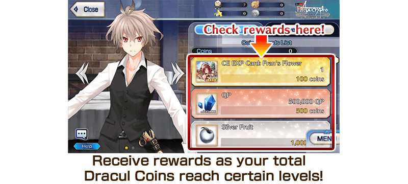 Obtain EXP cards through “Dracul Coin” Rewards to greatly strengthen your Craft Essences!