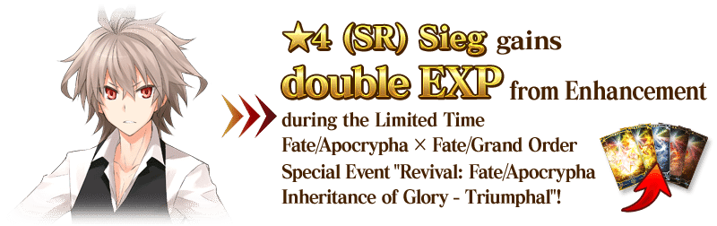 If you got "★4 (SR) Sieg" in the original Limited Time Event "Apocrypha/Inheritance of Glory", bonus rewards will be available in this event.