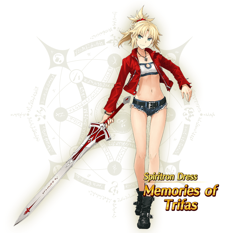 See "★5 (SSR) Mordred (Saber)" with the new Spiritron Dress "Memories of Trifas" equipped in an exclusive video of her Noble Phantasm, available on YouTube!