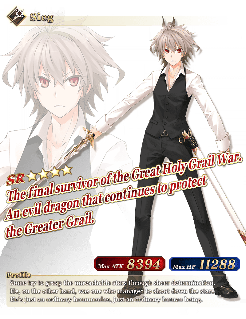 See “★4 (SR) Sieg” in action on YouTube, where we're sharing an exclusive video of his Noble Phantasm!