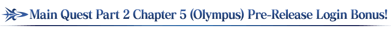 We'll be distributing a special login bonus to celebrate the pre-release of Main Quest Part 2 Chapter 5 "Lostbelt No.5: Interstellar Mountainous City, Olympus - The Day to Bring Down Gods".