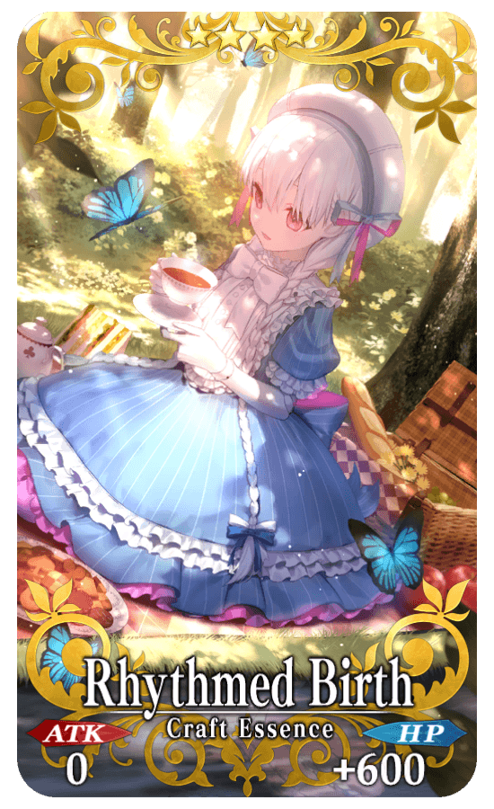 ★★★★SR Rhythmed Birth ATK 0 HP 600 (MAX: 2250) Skill Increase NP Gain by 15% & increase NP Charge by 1 level when using NP (1 time) for yourself |