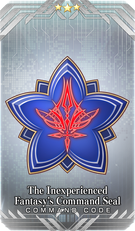 ★★★R The Inexperienced Fantasy's Command Seal Skill Increase the engraved Card's C. Star Gather Rate by 100% only if the engraved Card is an Arts Card * You cannot receive the Command Code again if you already received it during 2021's Limited Time Event "All-Out Nobunaga Assault GUDAGUDA Final Honnoji 2021".