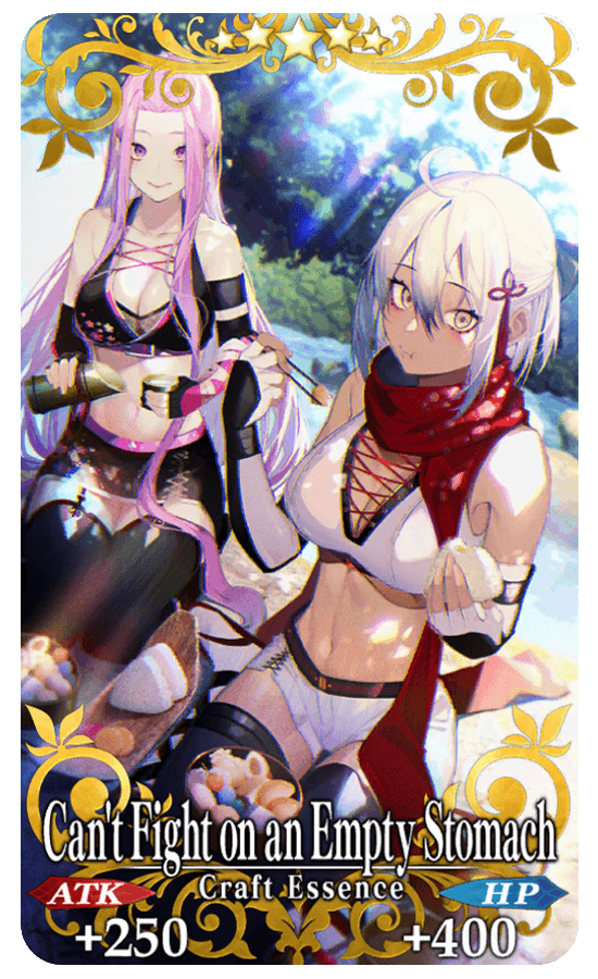 Servants equipped with Event Limited Craft Essence "★5 (SSR) Can't Fight on an Empty Stomach", available through Event Item Exchange, will receive an ATK bonus within Event Quests.
