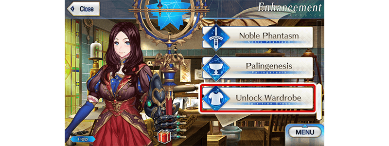 * Upon unlocking a Spiritron Dress, the Servant's battle sprite and icons will automatically be changed. You can revert back to the original appearance or change to a different Ascension level from the Servant Details screen. * "Unlock Wardrobe" will only change the eligible Servant's appearance. Their class and all other parameters will remain the same.