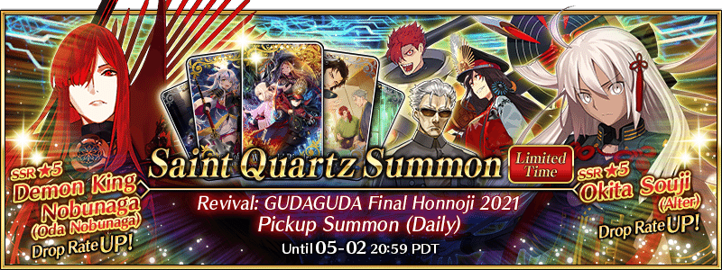 "Revival: GUDAGUDA Honnoji Final 2021 Pickup 2 Summon (Daily)" Period: