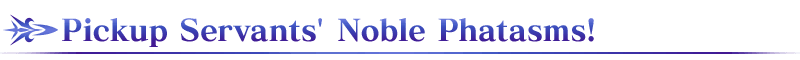 * As the lineup for this Pickup Summon will change daily, the following Servant(s) will not be summonable on certain days. Please be sure to confirm the lineup before summoning.