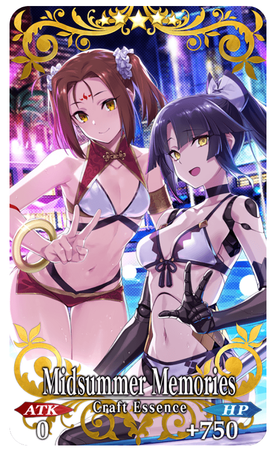 Equip the Event Limited Craft Essence "★5 (SSR) Midsummer Memories", available through Event Item Exchange, to gain an ATK bonus for the equipped Servant.