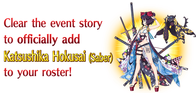 In this event, Event Limited Servant "★4 (SR) Katsushika Hokusai (Saber)" will temporarily join your party as you progress in the Main Story.