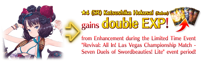 If you got "★4 (SR) Katsushika Hokusai (Saber)" in the original Limited Time Event "All In! Las Vegas Championship Match - Seven Duels of Swordbeauties!", bonus rewards will be available in this event.