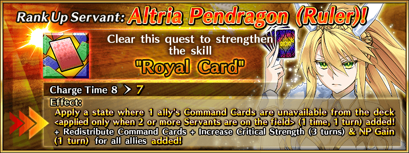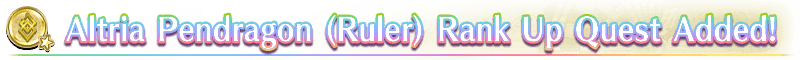 A special Rank Up Quest for "★5 (SSR) Altria Pendragon (Ruler)" will be permanently added to Chaldea Gate.