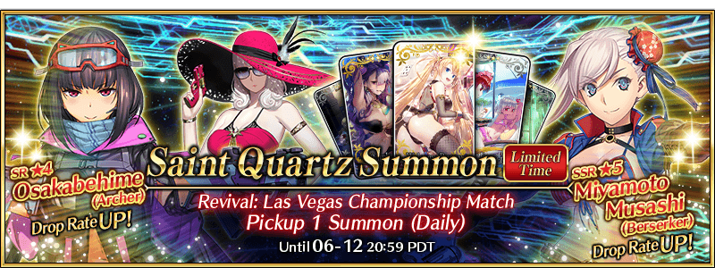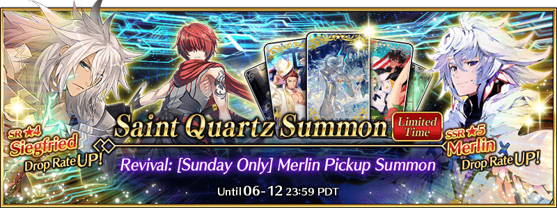 The Limited Time "Revival: Las Vegas Championship Match Pickup 1 Summon (Daily)" and Limited Time "Revival: [Sunday Only] Merlin Pickup Summon" are also ongoing!