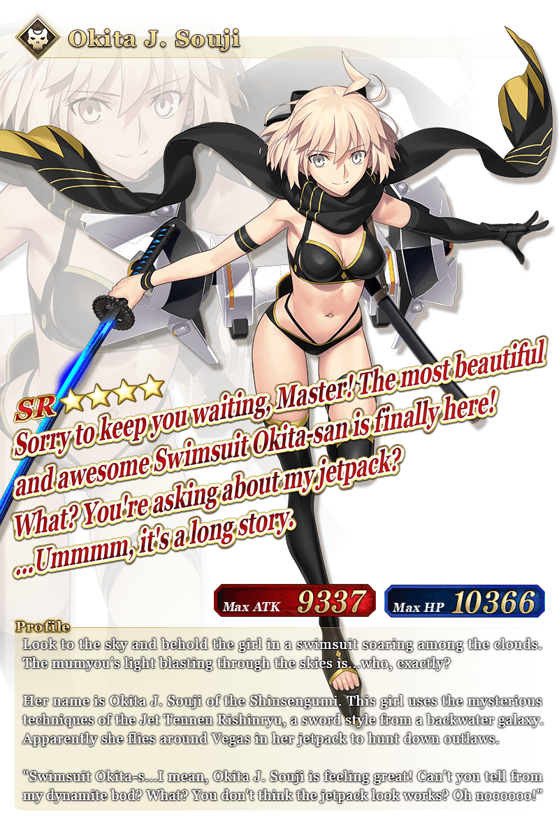| 2022-06-03 21:00 - 06-05 20:59 PDT | ★4 Mysterious Alter Ego Λ ★4 Okita J. Souji |