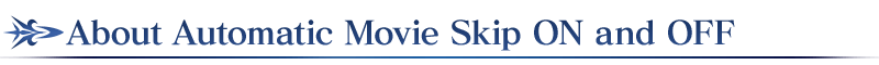 * This setting will be set to "ON" by default. * If you have seen the movie and this option is set to "OFF," you can skip the opening movie by touching the screen while the movie is playing.