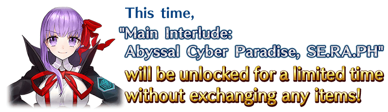 Masters who have cleared "Main Interlude: Abyssal Cyber Paradise, SE.RA.PH" will be eligible.
