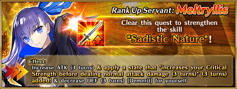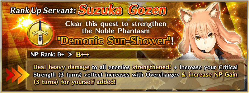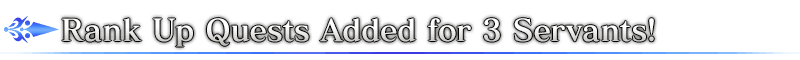 "Rank Up Quests" are special quests that enhance your Servants' abilities. New Rank Up Quests will be permanently added to Chaldea Gate for "★5 (SSR) Kingprotea", "★5 (SSR) Meltryllis", and "★4 (SR) Suzuka Gozen".