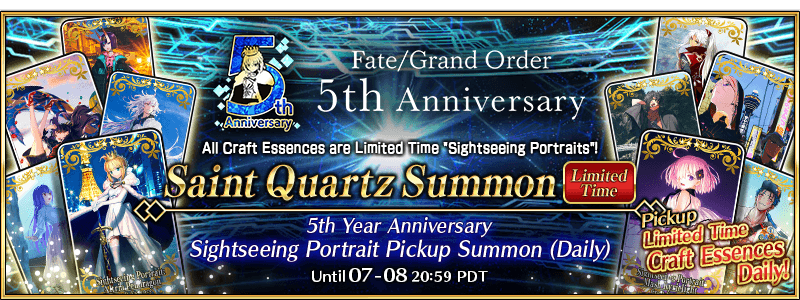 * The Limited Time "Sightseeing Portrait" Craft Essences available for exchange with the "Fate/Grand Order 5th Anniversary Sightseeing Portrait Tickets" are the same Craft Essences available through this Summon.