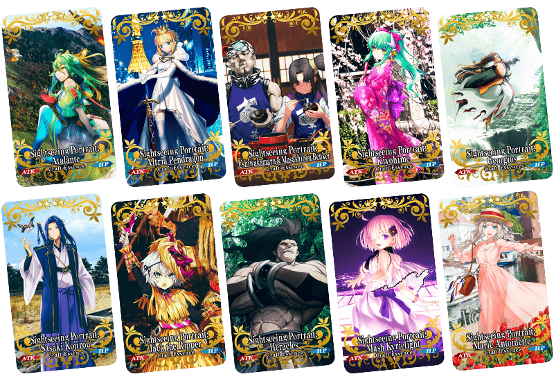 Sightseeing Portrait: Atalante (Tokushima Prefecture) Sightseeing Portrait: Altria Pendragon (Tokyo) Sightseeing Portrait: Ushiwakamaru & Musashibou Benkei (Iwate Prefecture) Sightseeing Portrait: Kiyohime (Wakayama Prefecture) Sightseeing Portrait: Georgios (Chiba Prefecture) Sightseeing Portrait: Sasaki Kojirou (Yamaguchi Prefecture) Sightseeing Portrait: Jack the Ripper (Akita Prefecture) Sightseeing Portrait: Heracles (Kagoshima Prefecture) Sightseeing Portrait: Mash Kyrielight (Tokyo) Sightseeing Portrait: Marie Antoinette (Nagasaki Prefecture) |