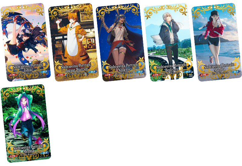 Sightseeing Portrait: Ishtar (Saga Prefecture) Sightseeing Portrait: Jaguar Warrior (Ehime Prefecture) Sightseeing Portrait: Nitocris (Tottori Prefecture) Sightseeing Portrait: Bedivere (Gunma Prefecture) Sightseeing Portrait: Martha (Okinawa Prefecture) Sightseeing Portrait: Medusa (Mie Prefecture) |