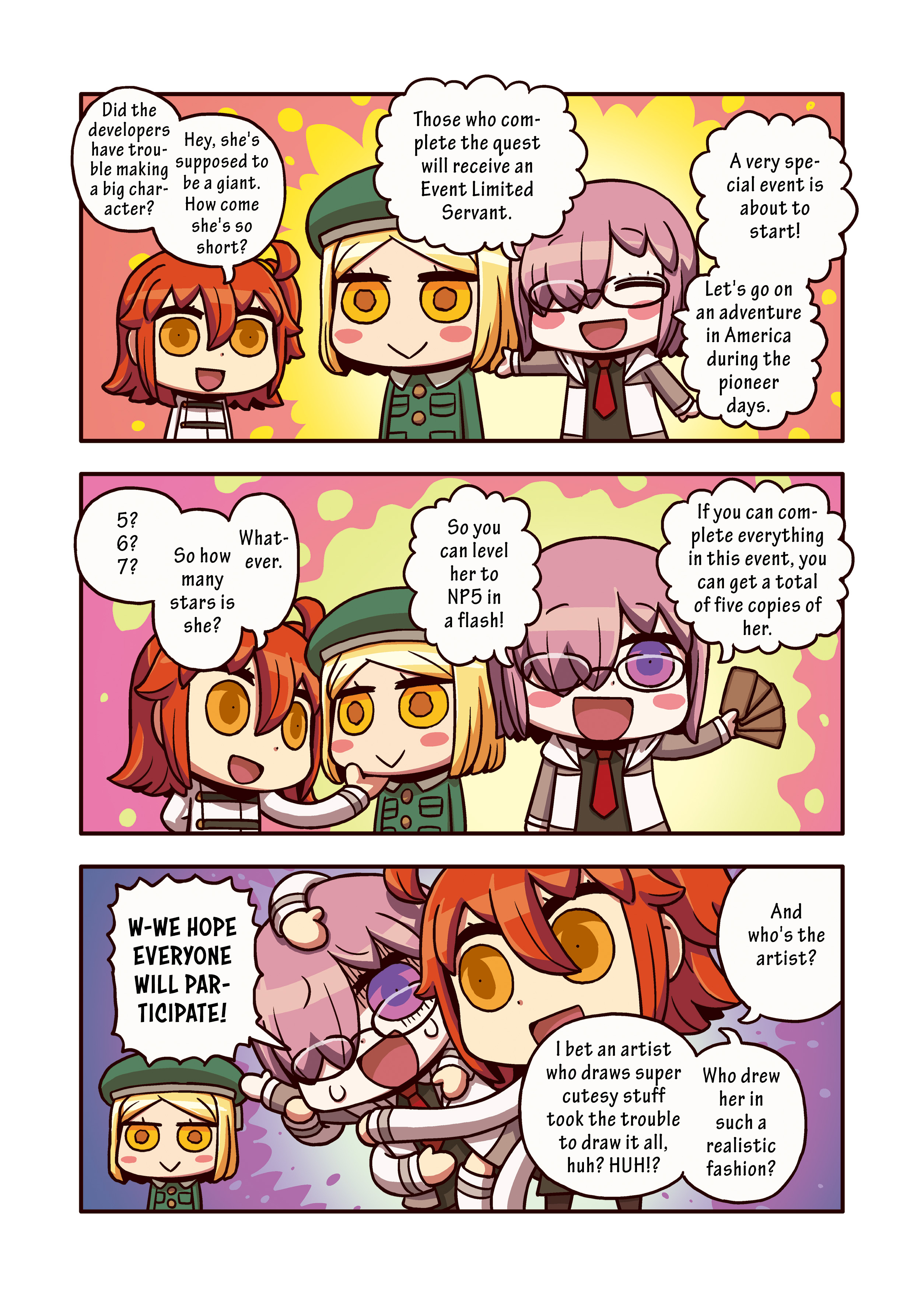 If you got "★1 (C) Paul Bunyan (Berserker of Learning with Manga)" in the previous Limited Time Events "All the Statesmen! Learning with Manga: The History of the American Frontier" and "Revival: All the Statesmen! Learning with Manga: The History of the American Frontier", bonus rewards will be available in this event.