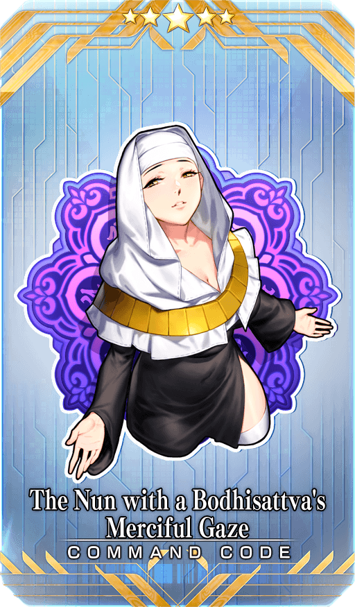 [Event Limited] ★★★★★SSR The Nun with a Bodhisattva's Merciful Gaze Skill Apply 20% Special Attack [Lawful] & 20% Special Attack [Ruler] effect to the engraved Card * You can only claim this Command Card if you did not receive it in 2021’s Limited Time Event “Tokugawa Restoration Labyrinth, Ooku”.