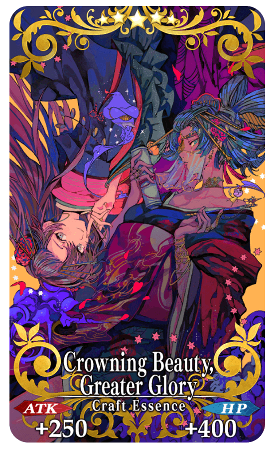 Servants equipped with Event Limited Craft Essence "★5 (SSR) Crowning Beauty, Greater Glory", available through Event Item Exchange, will receive an ATK bonus within Event Quests.