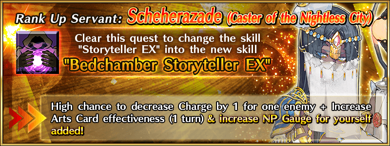 Special “Servant Rank Up Quests” will be added permanently to Chaldea Gate to strengthen “★5 (SSR) Scheherazade (Caster of Nightless City)” and “★5(SSR) Sessyoin Kiara (Alter Ego)”.