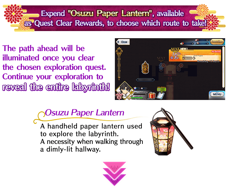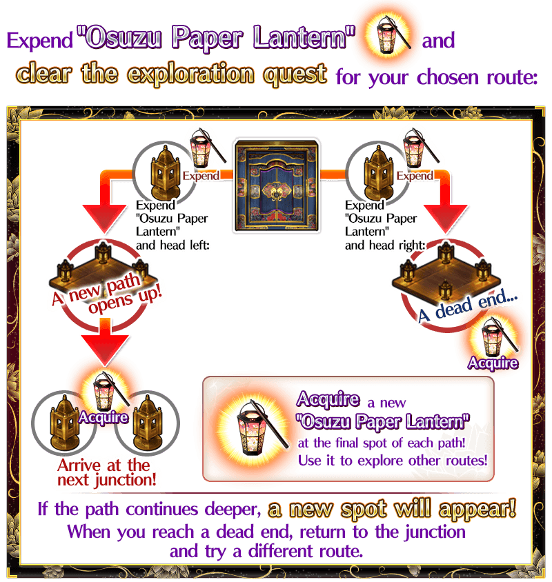Once you expend an "Osuzu Paper Lantern" to execute one of the exploration quests, a new spot will appear, allowing you to venture further into the labyrinth.