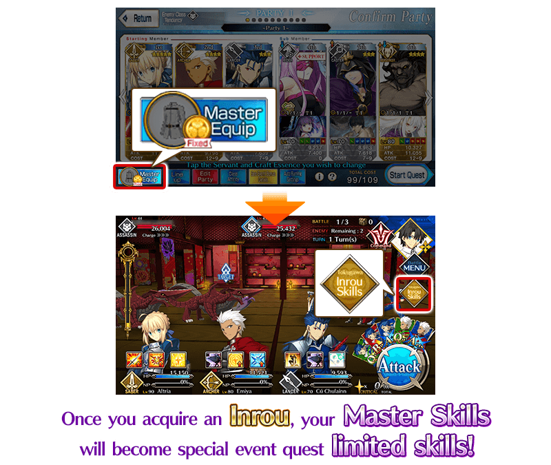 Once you have an "Inrou", the Master Skills available within Event Quest battles will change from your Mystic Code skills to unique "Inrou Skills".