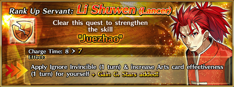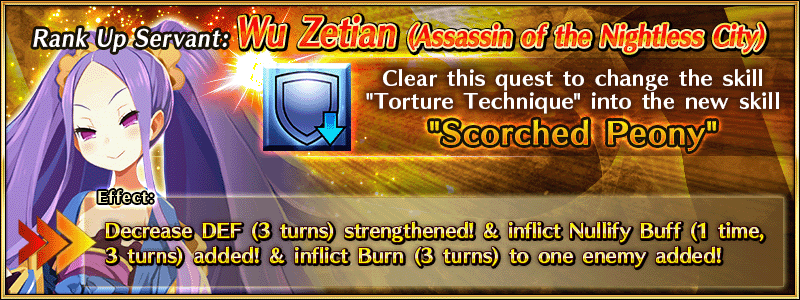 Special "Servant Rank Up Quests" for "★4 (SR) Li Shuwen (Lancer)" and "★4 (SR) Wu Zetian (Assassin of the Nightless City)" will become permanently available in Chaldea Gate.