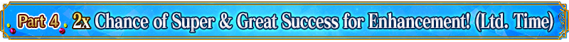 The chance of Super Success (double EXP acquired) and Great Success (triple EXP acquired) when performing Servant and Craft Essence Enhancement will be doubled for a limited time!