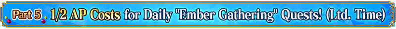 For a limited time, all Daily Ember Gathering Quests (available within Chaldea Gate) will have their AP costs halved! (AP costs will not change even if you withdraw from battle)