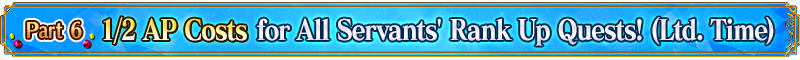 For the following period, Rank Up Quests for all Servants will have 1/2 AP cost! (AP costs will not change even if you withdraw from battle)