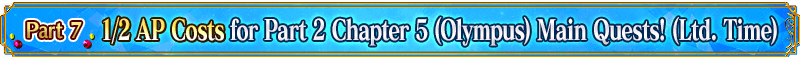 For the following period, Part 2 Chapter 5 Olympus Main Quests will have 1/2 AP cost! (AP costs will not change even if you withdraw from battle)