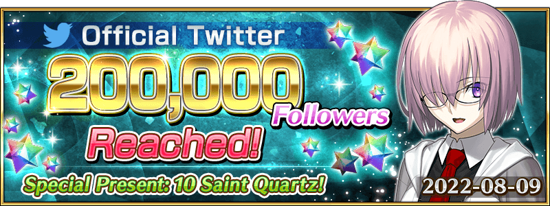 [Chaldea PR] 10 Saint Quartz to Commemorate 200,000 Twitter Followers!