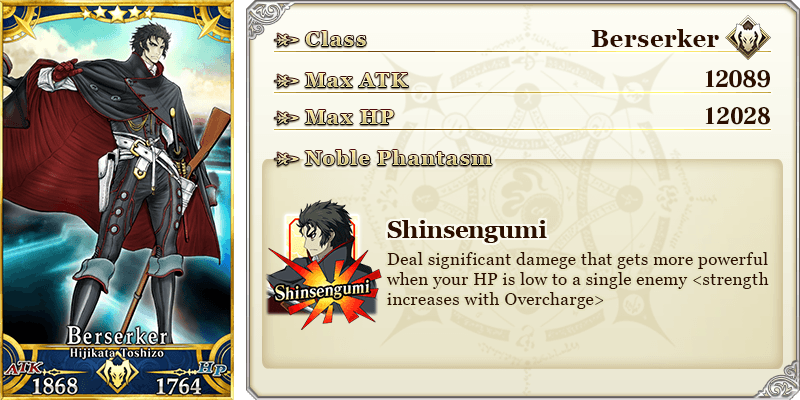 | 2022-09-09 21:00 - 09-12 20:59 PDT | ★5 Okita Souji (Saber) ★5 Hijikata Toshizo |