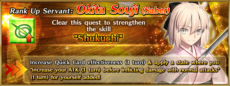 Special "Servant Rank Up Quests" will be added permanently to Chaldea Gate to strengthen "★5 (SSR) Okita Souji (Saber)" and "★5 (SSR) Hijikata Toshizo".